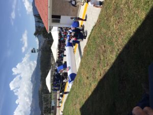 There would of course be many speeches by all the important people, the major, the priest (it is a very catholic community) as well as many others who I did not have the title for. We at first went to the tent set up in front of the stage to see the proceedings, but there were not enough chairs set up so Patrick and I stood behind. The way people were looking at him though I figured we would be smart to go to the very back. People were looking up at Patrick , smiling a bit amazed I think at how tall he is, so we shuffled to the back so they would have a better view, all of us having a good chuckle.