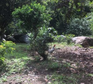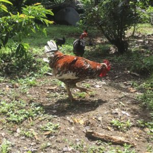 Two of the roosters that come by each day – you have to admit this bit guy is spectacular!!! He thinks so anyway……..