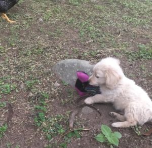 Little Scott seems to not realize he is “little”. There is the chicken that hangs around with the dogs near the kitchen that seems to be scott’s “Amigo”, but like all good friends, they have their fights – usually over the dirt bed they seem to both like. Scott yipes and barks at the chicken if he is in his spot, while the chicken just lays there totally unaffected by the pestering noises. If Scott gets the bed first however the chicken tends to reach in and peck at Scott until he gets mad and chases her away. It’s pretty comical :).
