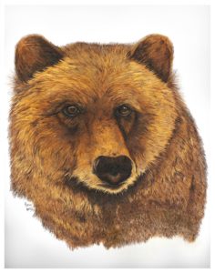 When the image was almost finished my second oldest son, Colby, who was watching me draw made the comment, “I can see a face in your bear.” I kind of laughed thinking he was teasing me because after all it was a face, but he said, “No, Mom, I can see a human face in the bear.”
