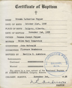 Why did Duncan decide to change my name, and why was he the one to arbitrarily make that decision at my baptism? Helen said she did not attend, another surprising admission, so he made the decision without her knowledge or permission. Hardly a satisfactory explanation! Helen also said my grandmother (Duncan’s mother) had traveled specifically from Montreal by train for the event, (she was afraid to fly), yet did not attend. In fact, she said because my Grandmother did not attend she also was unable to go. This only created more confusion for me because a baptism is an important event for Catholics, so I could not understand why.