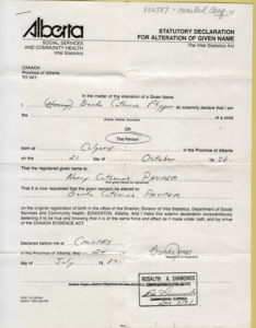 While I stood at the counter of Vital Statistics in downtown Calgary waiting for the woman to come from the back room with my new birth certificate, I could never have dreamt I would be confronted with this challenge to my identity.