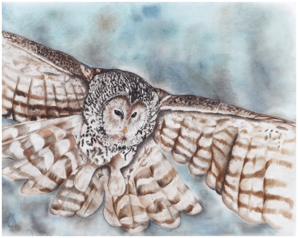 I feel it is important to mention this owl was a Great Grey that lived on our property. I often saw him as we were coming and going down the gravel road to town. Whenever I saw him near the house always I would try to go outside to watch him.