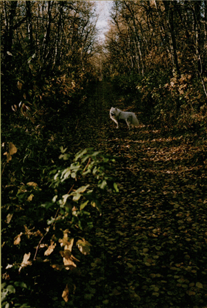 Mother’s Day, May 11, would have been his 15th birthday. We decided to take a walk to his resting spot to say hello. I was quite nervous because I had visions of his body in decay which I really did not want to see. When we got close we could see some of his white fur looking like a mound of snow not yet melted.