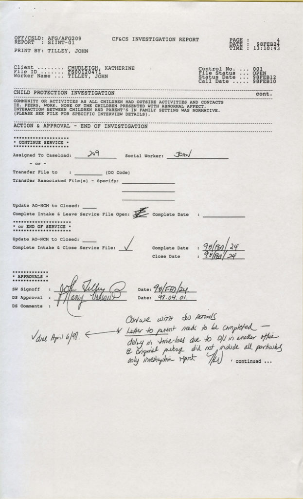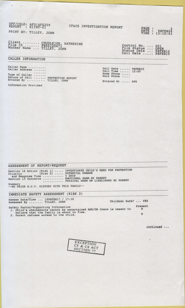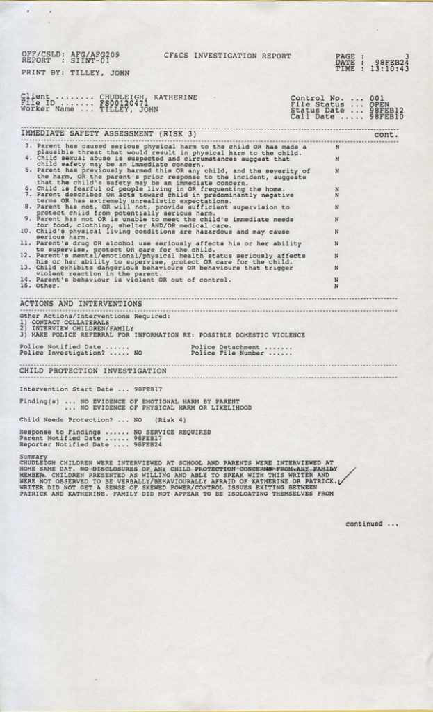 Whoever made the allegations about what was supposedly going on in our home would never be named, their anonymity assured, despite the social workers ultimate satisfaction all claims against us were false. It is a truly helpless feeling realizing someone could attack our family without having any option to fight back. This is something that follows for the rest of your life, the information going from school to school as a precaution. There is no way to erase false allegations and make them disappear, yet the people responsible for creating this storm walked away Scott free. I truly could not believe the system was to once again make me, make us, victims. I immediately suspected The Family and Darrell working together, and possibly one neighbour who was a little mentally unstable.