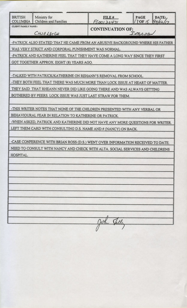After all these years I cannot recall everything that transpired during that meeting, but I know we had to answer many personal questions about our activities as a family, and I had to explain I was not a beaten housewife, and not restricted to the house. That Patrick had been accused of taking Colby by the throat and choking him truly shocked me, and it shocked Colby when we later told him. It is a terrible feeling to realize anyone could accuse us of such things in todays world without consequence when the allegations are proved false, as these were. I am still astounded by this reality.