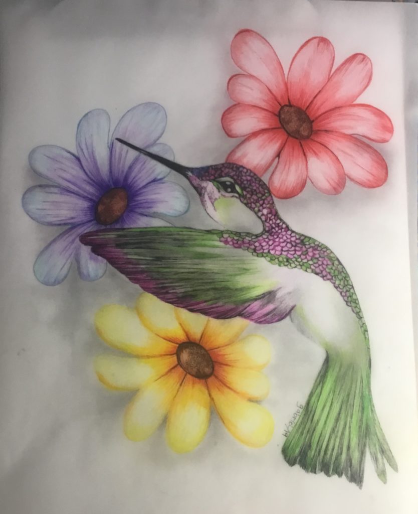 When I awoke I felt such a strong desire to bring a hummingbird to life on paper, which I have since learning this is my way to connect to that aspect of my personality. Once I got home and was strong enough I began.
