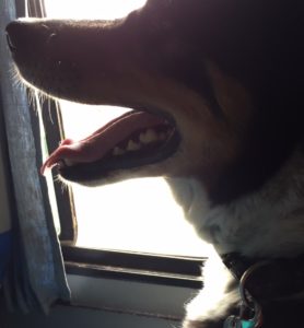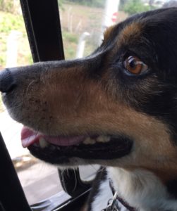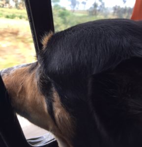 Once I opened the window and she got a whiff of the cooking smells from the street vendors, she forgot that she was confused and reached up, her front paws on the seat and her nose at the window.