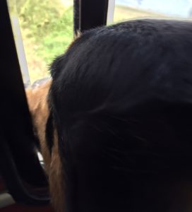 She just enjoyed the smells and the small view she had. All was good at this point, just another adventure. A little awkward getting off the bus, but overall she did so good, just another day in the life…