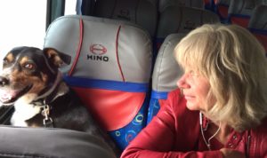 So when the bus came and while we waited to see if Mali was going to be allowed to join us, we could see that she was very unsure about this idea. The driver said to come on board, while the assistant loading the bags underneath the bus said no she was not allowed. So I was getting mixed signals and even though I had started to get on, I was uncertain and stepped back down. When they finally decided and I looked back as I made my way to the stairs, you could see the wheels spinning behind those beautiful eyes of Miss Mali, calculating and weighing the possibilities. She suddenly made up her mind that despite her fear of this great big car, it was better to board than be left behind, so up she went. However, she did not go to the passenger part of the bus, instead joining the driver, much to his shock. Then misunderstanding the alarm in his voice and his hand waving signals, she jumped into the co-pilots chair, ready to go. So a few minutes of panic and confusion, while we convinced her to join us in the passenger end of the bus. Once we did that she was fine, just a bit confused by the amount of people and the very bumpy ride. They have huge speed bumps here and when the bus goes over one, your belly does a flip flop as your butt leaves the seat and you are temporarily airborne. Great fun, but poor Miss Mali was a little unsettled by this motion.