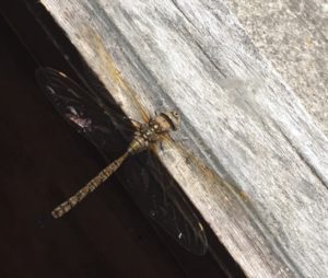 The next morning I found I had a beautiful golden dragonfly trapped in my room.