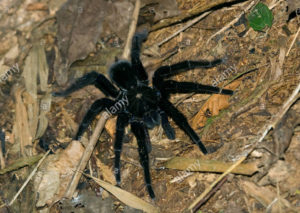 The overall color is russet brown to black, and there are distinct spines on the third and fourth pair of legs. The tarantula’s fangs fold under the body, meaning that it must strike downwards to impale its prey. Tarantulas have four pairs of legs, or eight legs total. In addition, they have four other appendages near the mouth called chelicerae and pedipalps. The chelicerae contain fangs and venom, while the pedipalps are used as feelers and claws; both aid in feeding. The pedipalps are also used by the male as a part of reproduction.