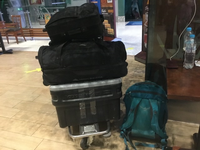 My worldly possessions stand beside me, my life now defined by a more nomadic lifestyle. The idea of collecting objects with meaning and attachment seems kind of silly as I keep giving away so much of what I just acquired. Charles was happy to take my leftover food and all the dishes I purchased along the way. They will be brought to family who is very poor, has very little, so I am grateful for his desire to do so. A borrowed fridge returned, and many art and bead supplies shared with those I met. Really all I bring back with me are small gifts, clothes and a beautiful experience which I hope to be able to share somehow.