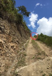 10. Patrick is around the corner and that speck in the red circle is Mali as she arrives at the corner.- yup it is a very steep climb, I wore my runners this time and I have to say my cloth soft soled shoes were better to climb this with. I think because of the flexibility of the sole, it was easier to get a grip …..